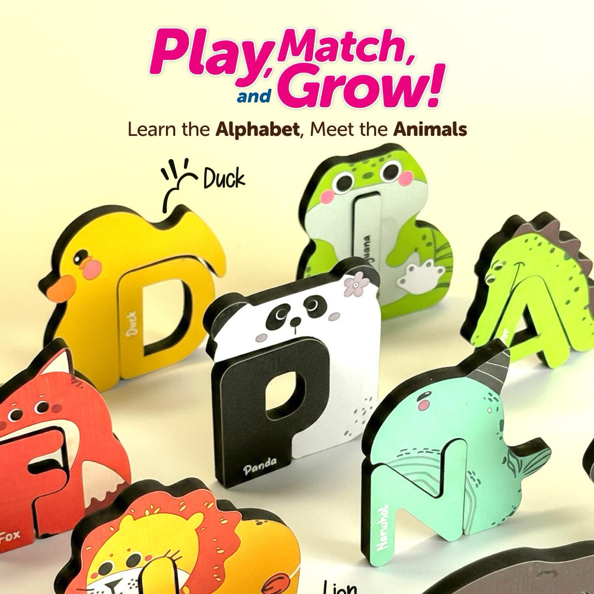 YaY Play A to Z Wooden Animal Alphabet Puzzles Set - 52 Pieces