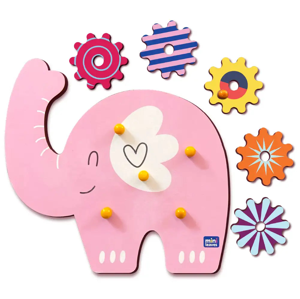 Baby Elephant Wooden Gear Toys with 5 Interchangeable Gears for 2+ Years