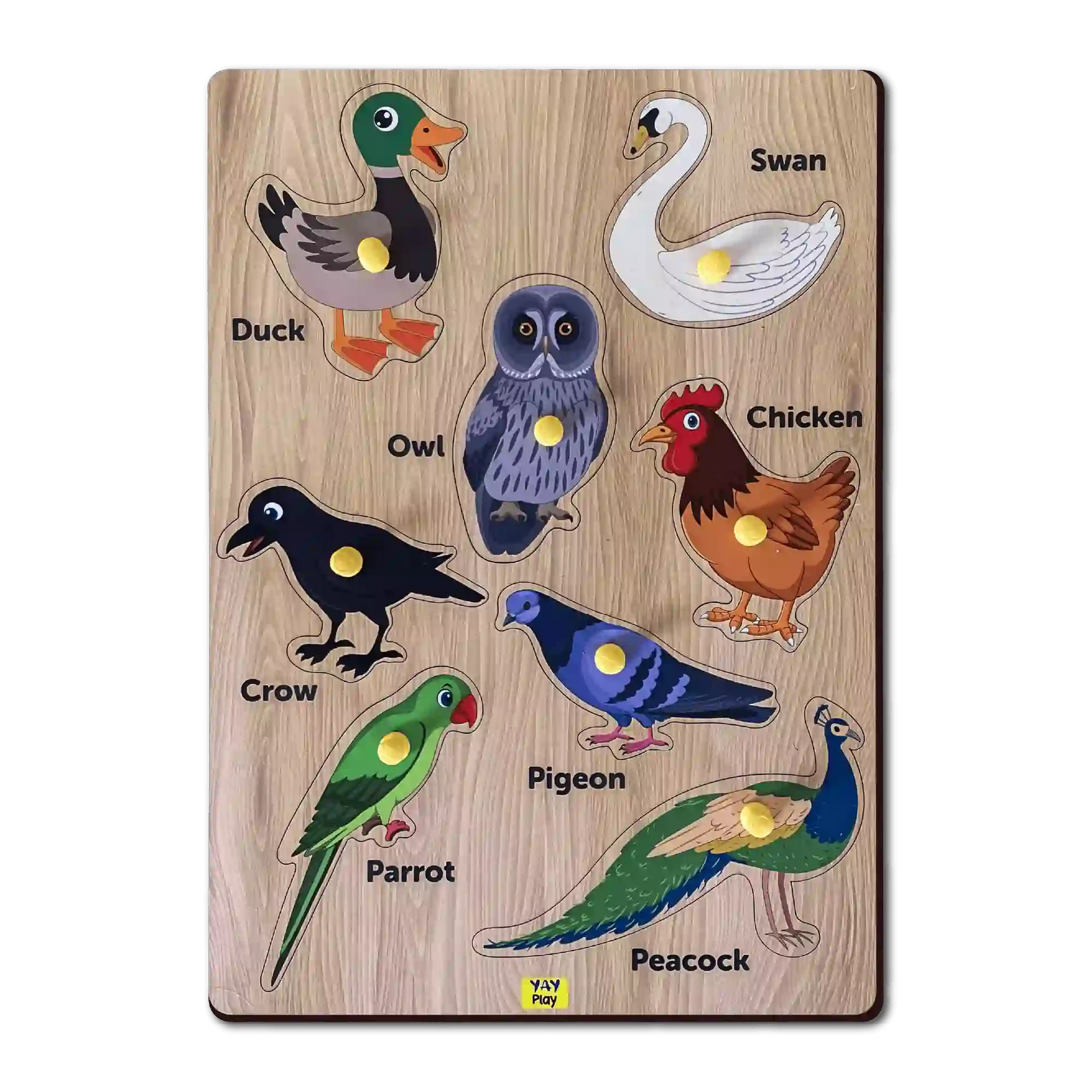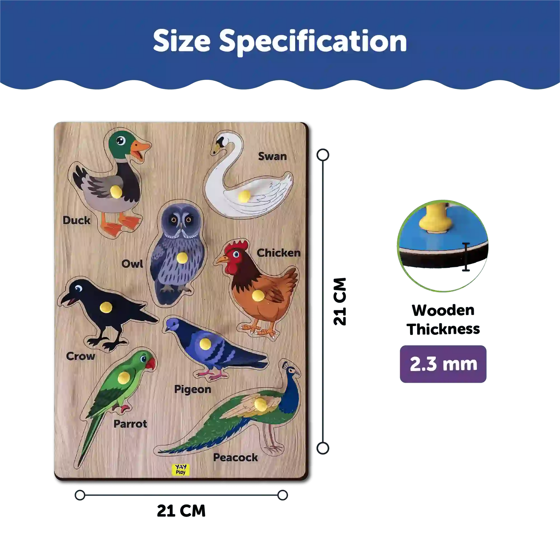 - 8 Pieces Wooden Bird Cut Outs, 1 Wooden Knob and Pegged board