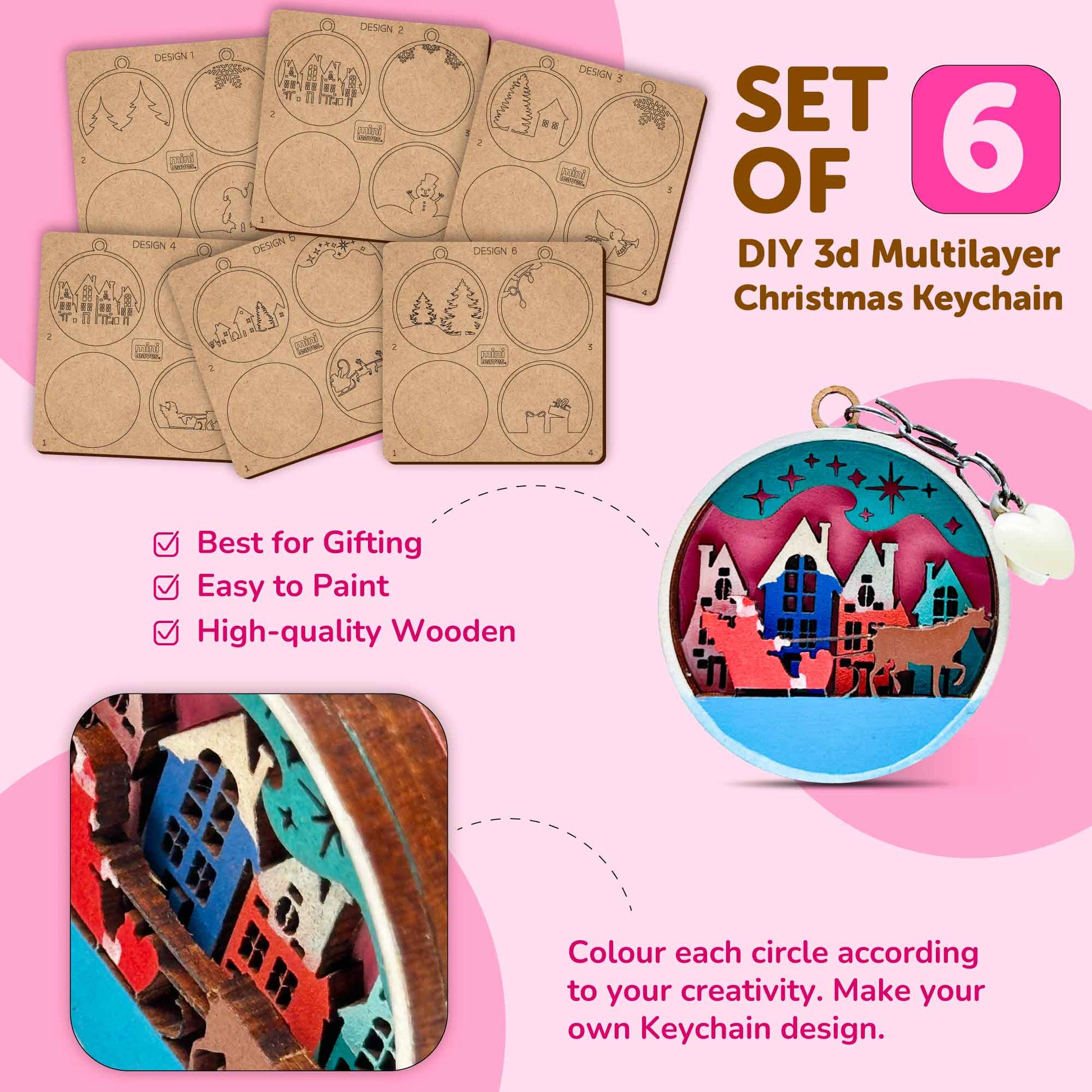 Unleash your child's creativity with this multi-layer DIY wooden key chain art and craft set! Perfect for kids aged 8 and above, it comes with acrylic markers, glue, and 6 key chains, allowing them to design and assemble their own personalised accessories. This engaging activity not only fosters artistic expression but also hones their fine motor skills and hand-eye coordination. With its vibrant colours and user-friendly materials, this set promises hours of fun and imaginative play. Surprise your little ones with this delightful Christmas gift and watch their faces light up with joy. Please note that adult supervision is recommended for younger children.