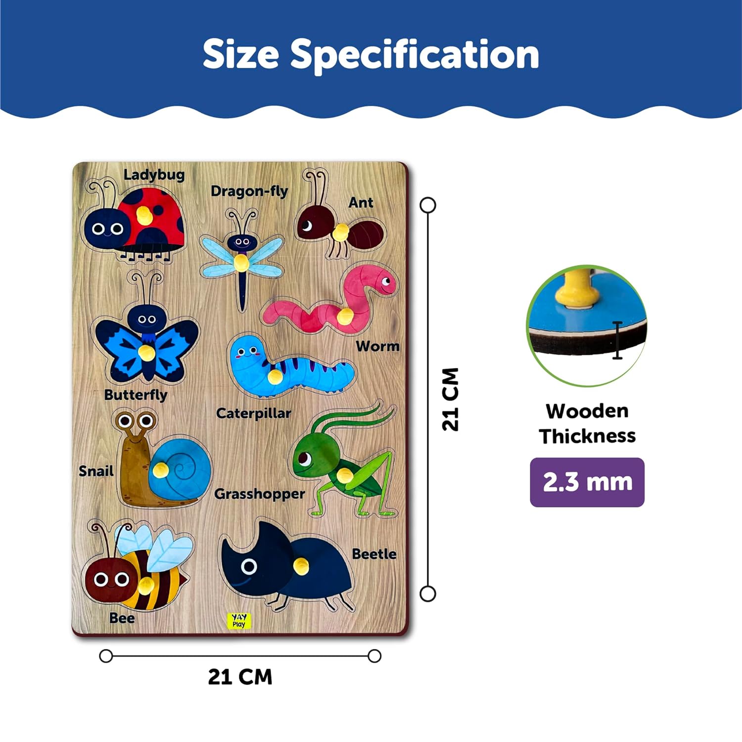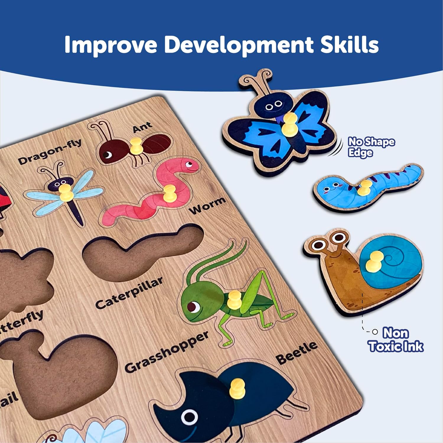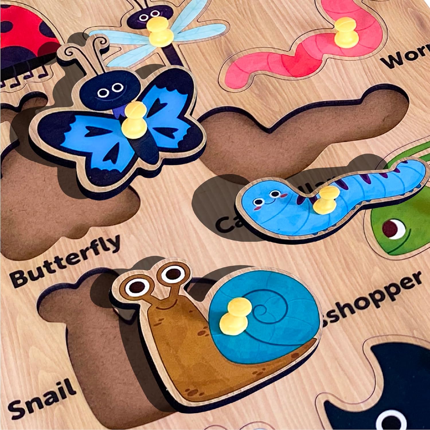 - Learning and teaching tools: This educational tool is perfect for teaching children about animals. It features 10 Insects with their names printed on a fun and colorful board. With this tool, children can learn the names of the different animals while developing their motor skills.