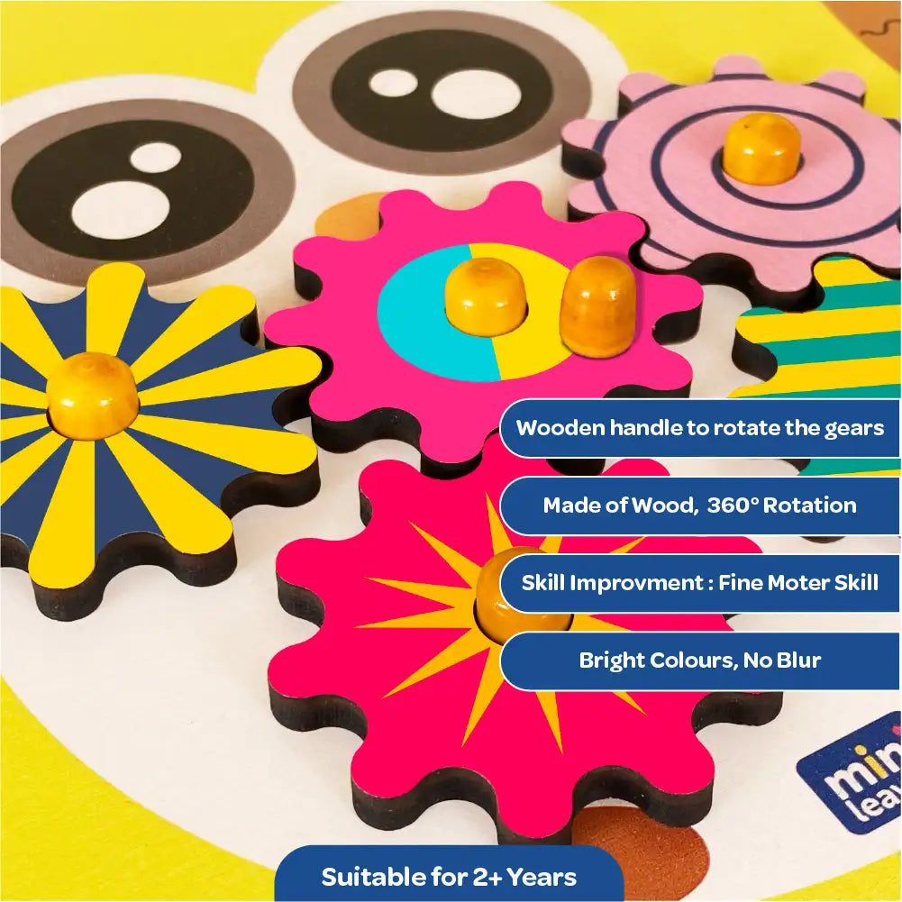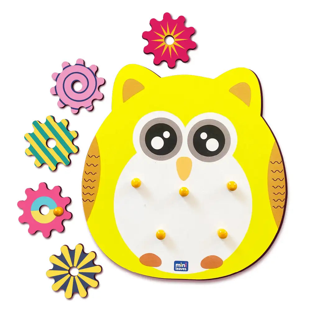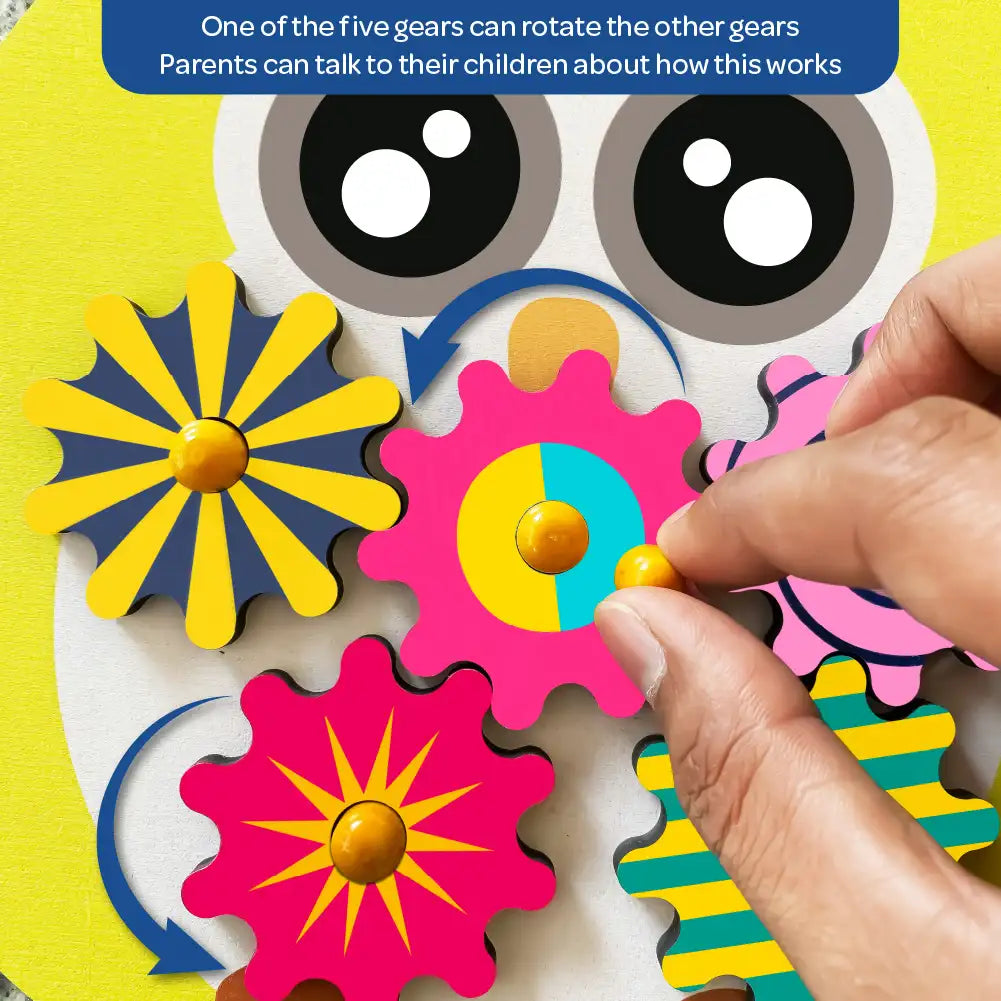 Owl Wooden Gear Toys with 5 Interchangeable Gears for 2+ Years