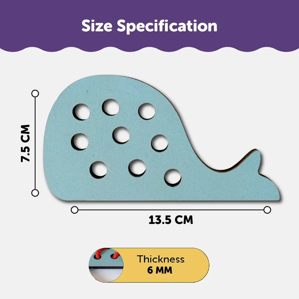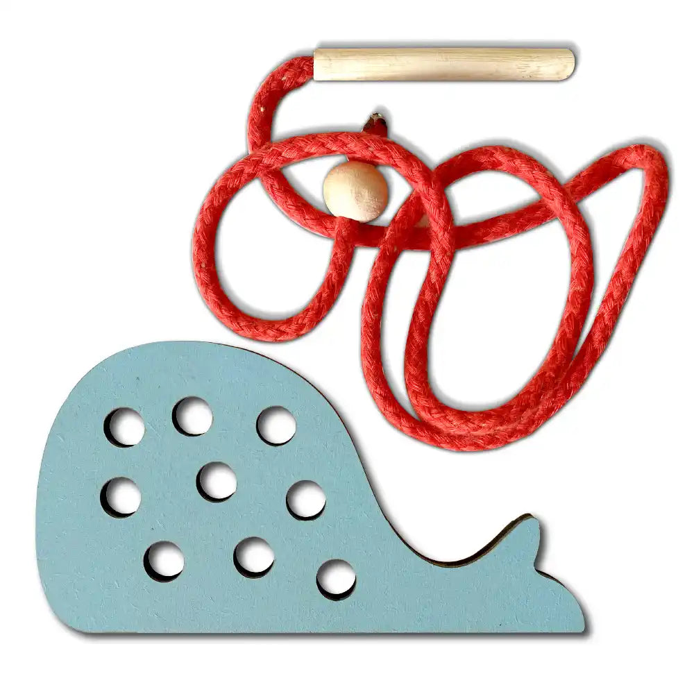 A preschool teaching activity toy to build early development of threading and sewing skills and develops hand-eye coordination and intellectual development, fine motor skills, also helps improve children's imagination and wrist coordination, exercises children's patience.