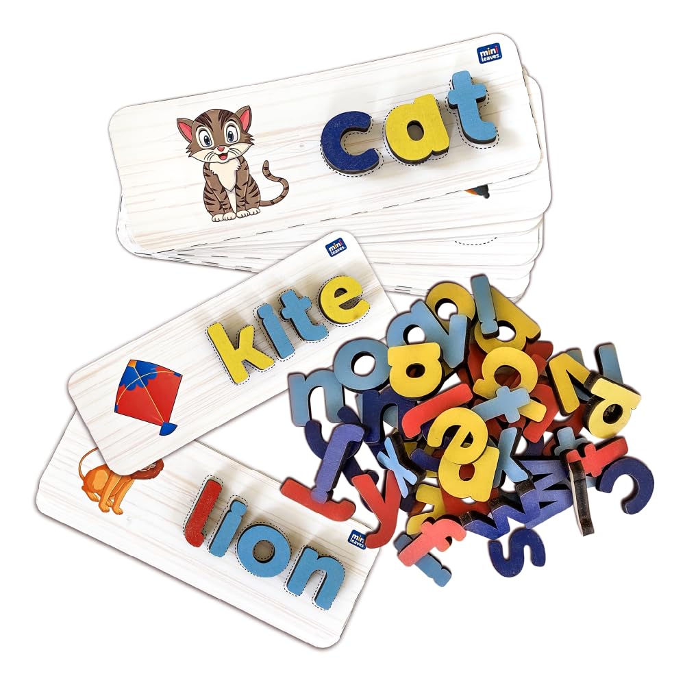 Learning can be easier with Mini Leaves multi-concept spells and learn wooden alphabets with 52 (2 sets of small alphabets) alphabets and 28 double-sided flash cards. Helping children develop memory and brain thinking by establishing connections between letters and words.